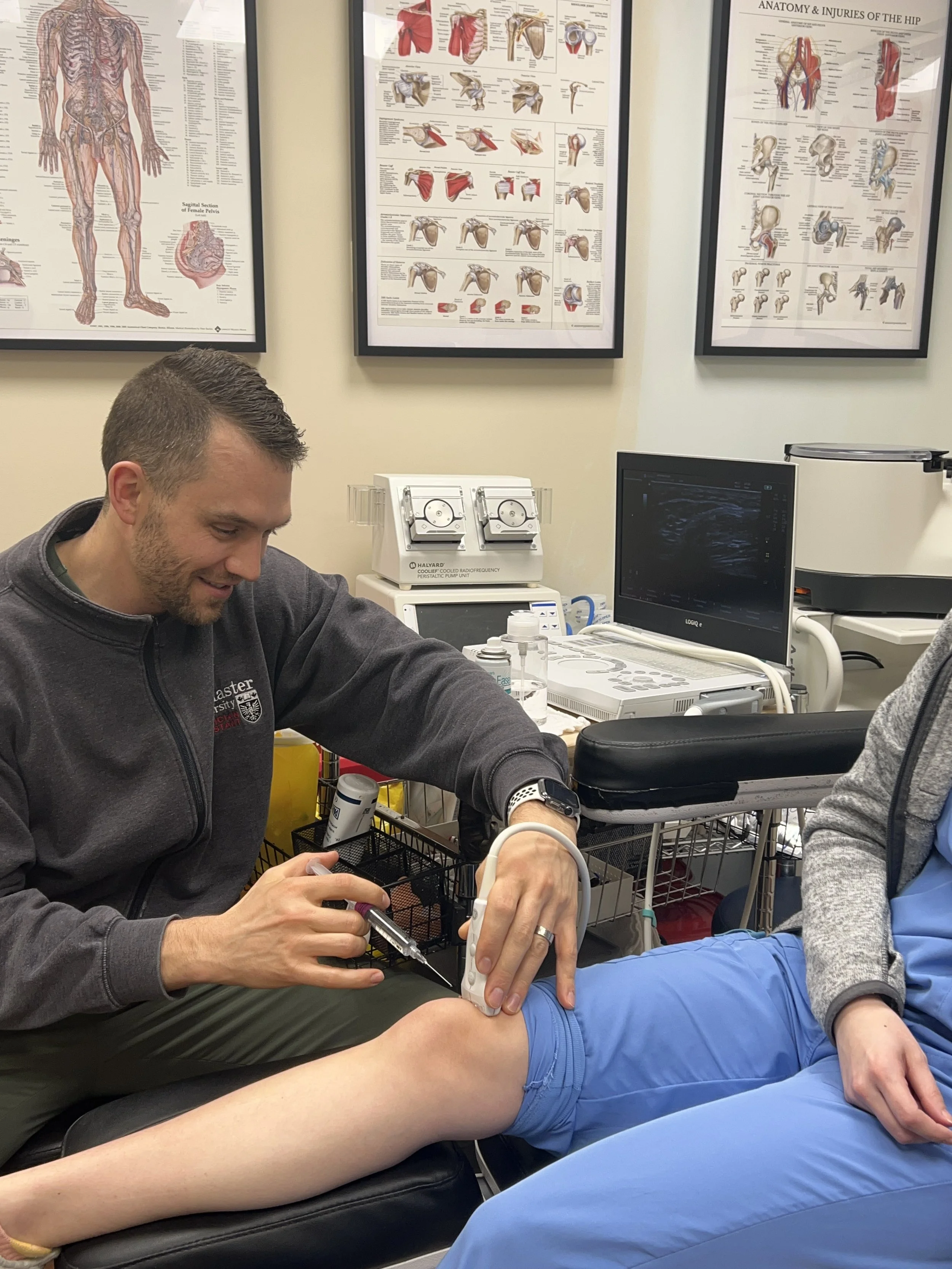 Justin performing an ultrasound guided knee injection.